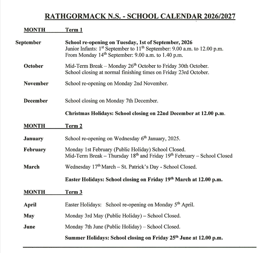 Click on this link for a PDF version of our school calendar for 2026 / 2027: Calendar 2026 2027 Click on this link for a PDF version of our school calendar for 2025 / 2026: Calendar 2025 – 2026 Click on this link for a PDF version of our school calendar for 2024 / 2025: Calendar 24 25